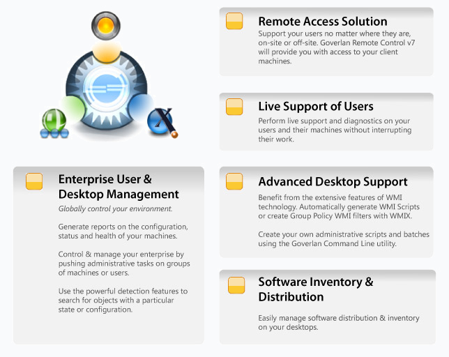 With our SURE-DATA technology, a real-time and database query engine, you get the most complete and accurate view on every machine, online or offline.Goverlan consists of the following 4 modules. Purchase the module according to the needs of your IT Team: